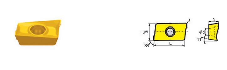 APKT11T304-PM(YBG202):2-4μm的TiAlN PVD涂層與超細(xì)顆粒的強(qiáng)韌性基體結(jié)合,適合于各類被加工材料的輕、中等負(fù)荷銑削以及不銹鋼和高溫合金的精、半精車削加工