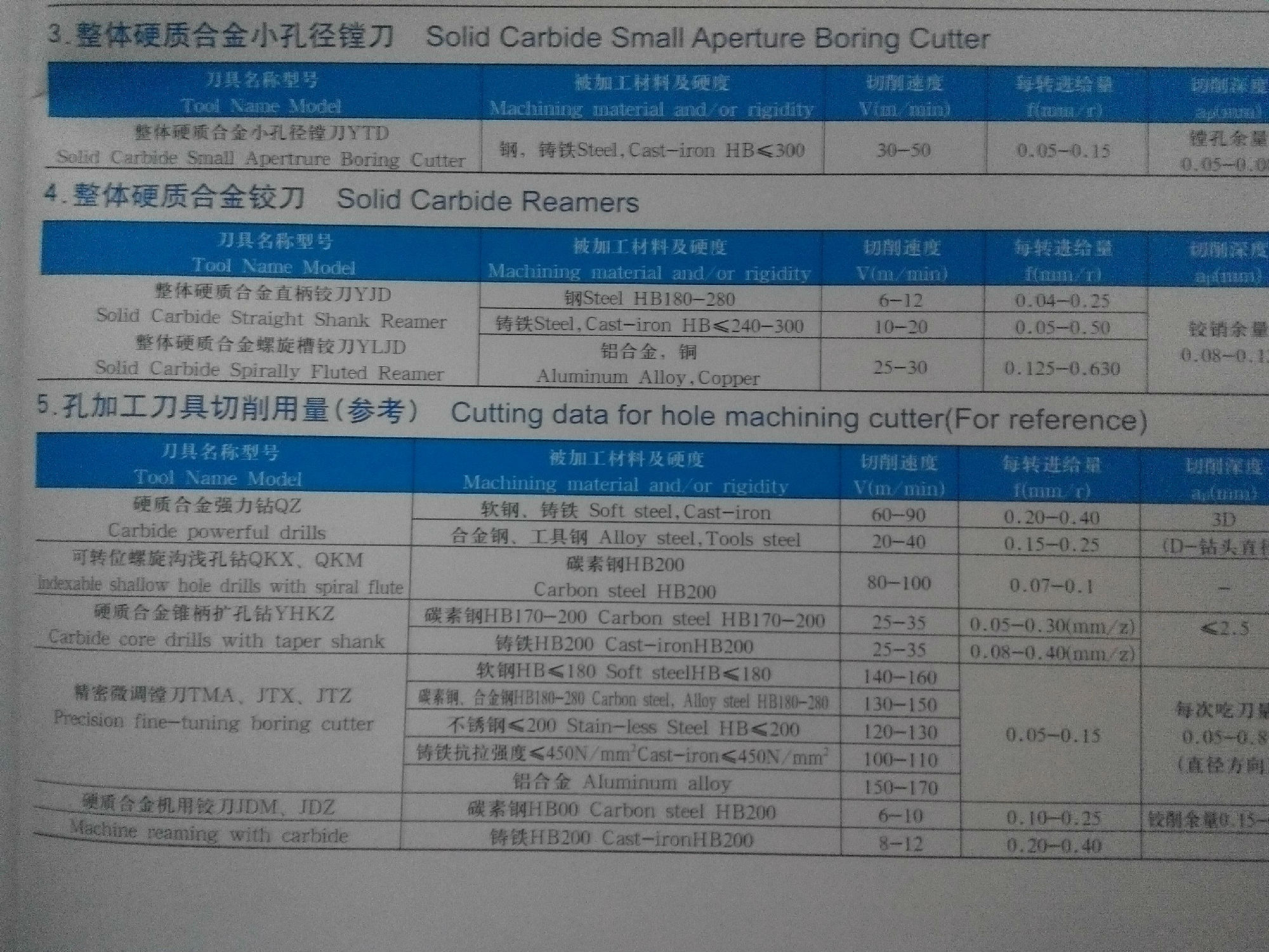 最近有客戶打電話咨詢小孔徑鏜刀與合金鉸刀加工孔的方案和參數(shù),下面上傳的圖片是標(biāo)準(zhǔn)理論參數(shù),如果需要更好的了解加工中刀具參數(shù),詳細(xì)情況請致電我們公司工程。