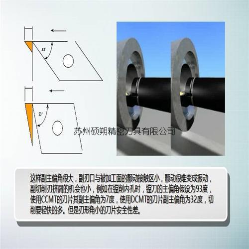 (7)內(nèi)孔鏜削時(shí)刀片刃形角越小越好