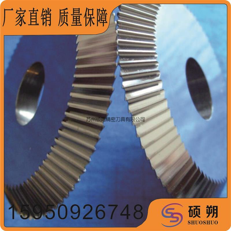 而當遇到在客戶定做鎢鋼鋸片銑刀時,會要求開密齒型,齒越密越好,因為客戶要求切口光滑,無毛刺;經(jīng)SS碩朔了解后得知:客戶是需要鎢鋼鋸片銑刀切割螺帽頂部的十字槽,材料是高碳鋼,槽深度僅為2mm,但是要求必須切口沒有毛刺,非常光滑;干切削,不能沖冷卻液。