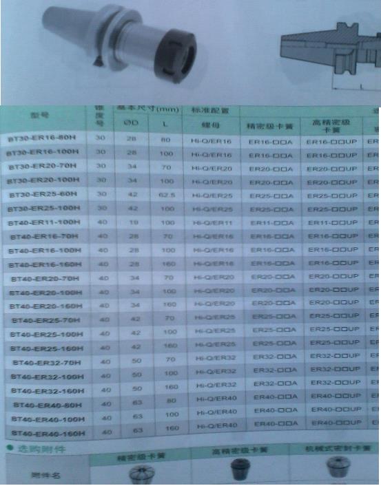 BT30彈簧夾頭刀柄彈簧有:同精密級卡簧、高精密級卡簧、機械式密封卡簧、攻絲卡簧